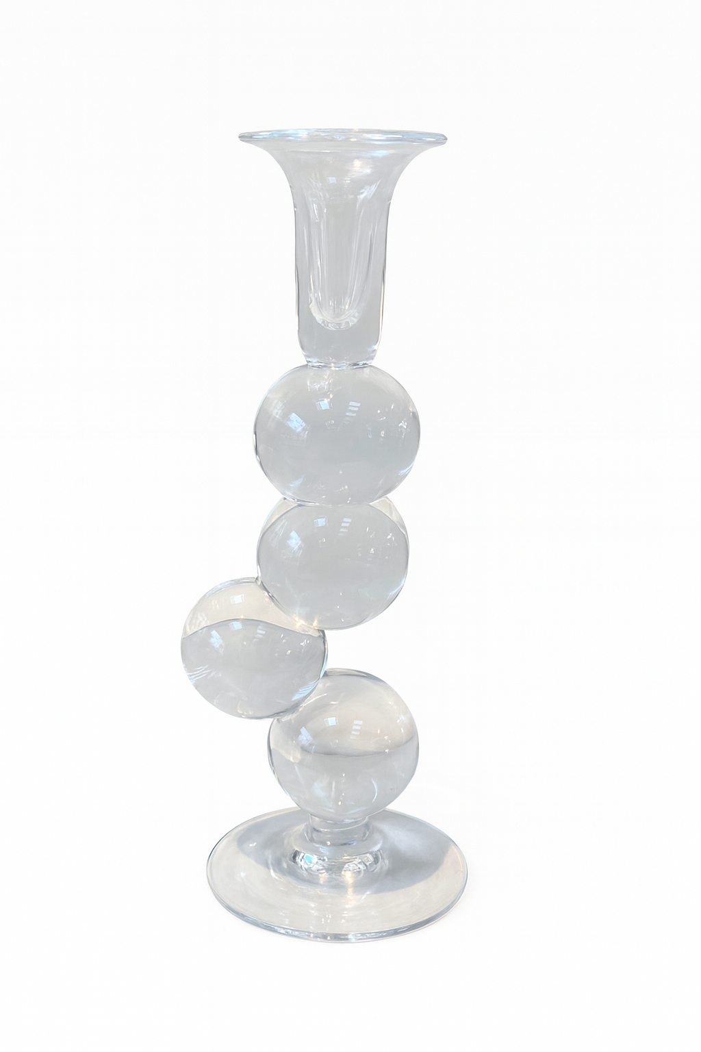 En elegant lysestager, skabt af fire bløde ”kugler”, der balancerer i en let, organisk kurve. Hver stage er håndlavet, så små variationer gør hver stage helt unikt.
